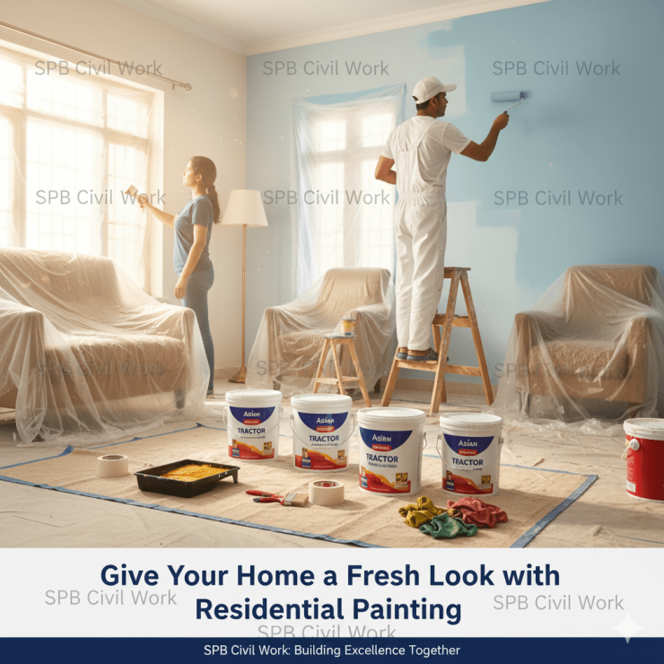 At SPB Civil Work & Cleaning Services, we always use branded paints like Asian Paints, Tractor Emulsion, and other high-quality products. These paints last longer, give a smooth finish, and are safe for your family. Whether it’s your living room, bedroom, or kitchen, we make sure your walls look new again.